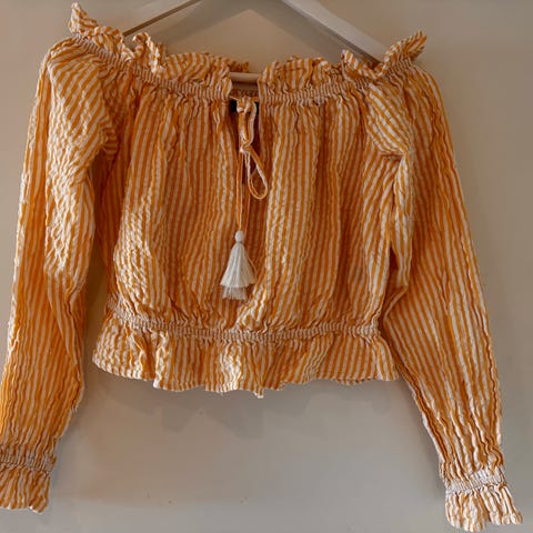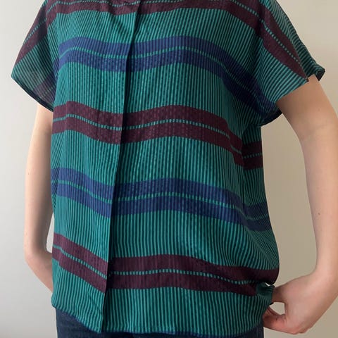 Flerfarget stripete bluse. Senneps / mørkeblå / lyseblå / hvit / vin-rød farger.