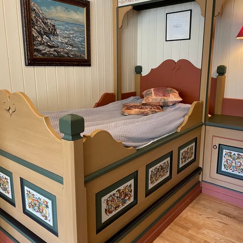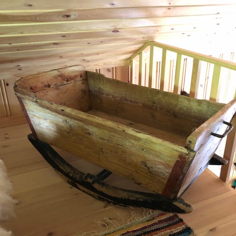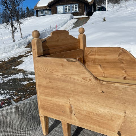 Vuggen er et vakkert og anvendbart møbel i hjem eller hytte, som her hvor den eksempelvis bugner av garn