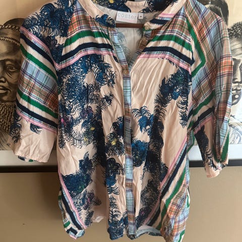 Stilig bluse i blått dyreprint.