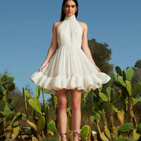 Ivory halterneck kjole med tyll og blomsterdetaljer