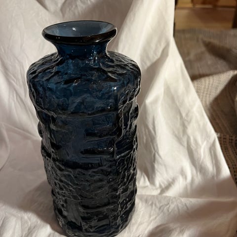 Fin blå glassvase 22 cm høy, 4 cm i diameter kan sende.