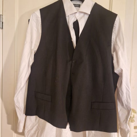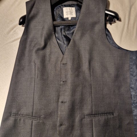 Nydelig Van Gils dress. Brukt et par ganger. Flott slips følger med. Kostet mellom 7-9000. Jeg var 177, og 83 kg:) Men etter at jeg ble pensjonist, kom det 3 kg. Så passer ikke buksa, og i tillegg er jeg ikke en type som bruker dress!