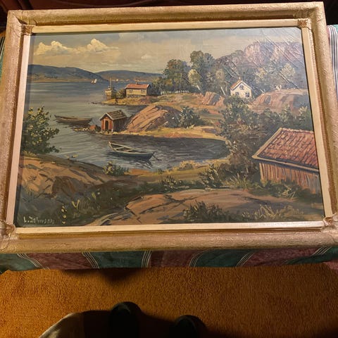 Fint bilde. Høstmotiv. Sign. H. Hawk ?