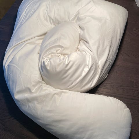 Er du en dyneomfavner? Denne u-formede kroppsputen dekker behovet til deg som trenger å finne en mer behagelig sovestilling. Kroppsputen har en stor U-form og pakker inn hele kroppen. Etter bruk krever den bare et par puff så er den god og "fluffy" igjen. Putevaret har glidelås og kan taes av.