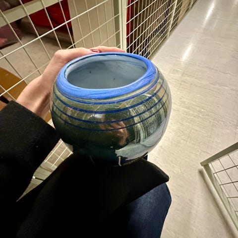 Utrolig vakkert er dette blekkhuset, som jeg tenker å selges. Det har vært hos meg i snart 40 år og nå klar for nytt hjem. Det har ett veldig spesielt stempel under og det er 18 x 20 cm.