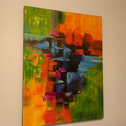 Henges opp med 2x medfølgende magnetiske brikker på baksiden, selvklebende lim fester mot brikkens side mot vegg. Enkel og solid montering. Matt overflate, bøyde kanter, 3 mm tykkelse. Bildet er et collector's piece. Selges til under innkjøpspris.