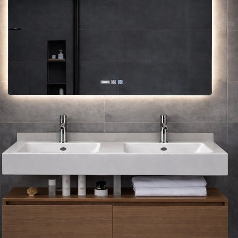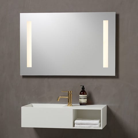 Speilet bygger minimalt ut fra vegg, 16 mm. Speilet er teflon-belagt som gjør det meget motstandsdyktig mot damp og fukt. Solide LED med levetid på ca 50.000 timer.