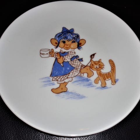 Humoristisk og charmerende tallerken.