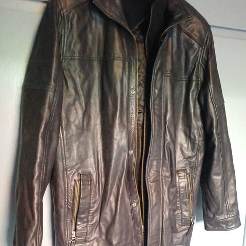 Ny ,Tony Cohen , skinn, sjokoladebrun jakke, style - Zafier, Str. L ,slank, Pris i butikk nkr 5549, selges -nkr. 1000