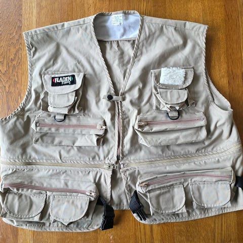 Fiskevest m.13 lommer. Vi har mye rimelig utstyr.