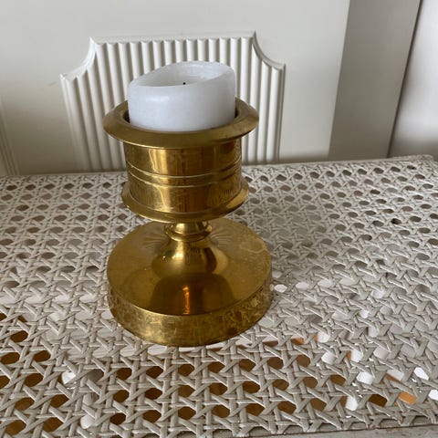 5 armet lysestake i palisander og messing. Messinghylse mangler i den ene staken - se bilde. Kan sendes,