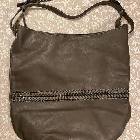 Den er laget i kalveskinn og har messing detaljer i gullfarge.