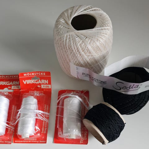 Diverse snorer og possement selges. Priser i billedteksten.