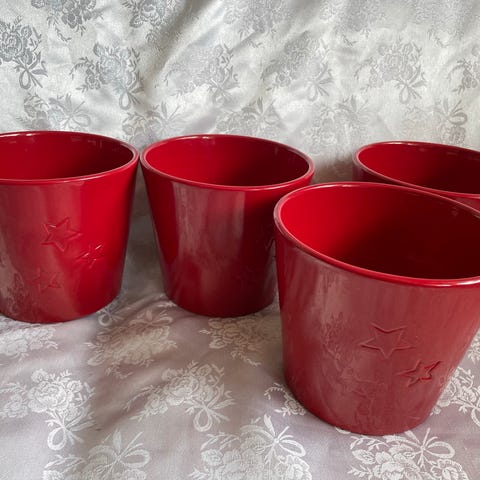 Lekre Potter i rødt, noen i gull, noen nye, noen pent brukt.