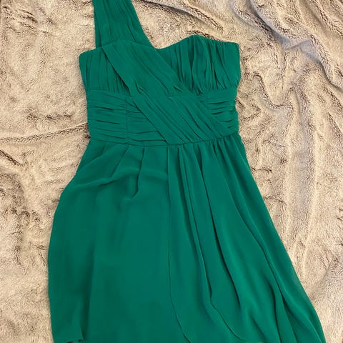 Brukt èn gang, er skinnende og fin i stoffet. Knæsj turkis.