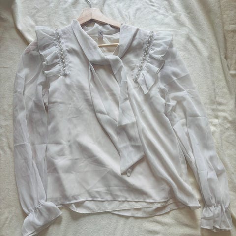 Ny topp i off white, elastisk rundt bryst og hofter, gjennomsiktige armene