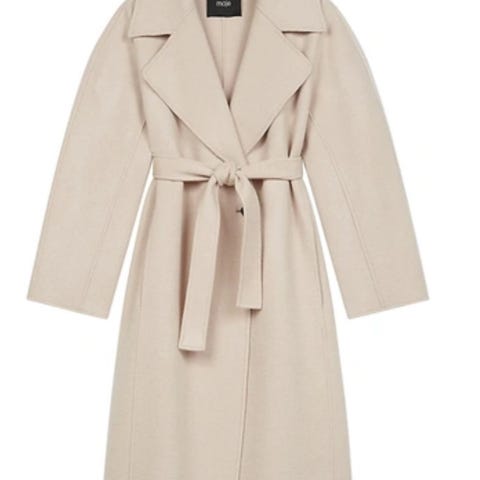 MIU MIU trekvart lang mørk grå kåpe i 80% ull og 20% angora. To lommer foran og trykk- knapper foran. To folder bak. Lengde 81 cm. Str 42. Brukt to ganger.