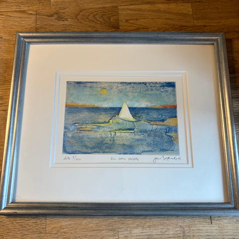 Jan Brænde litografi "En som seilte" selges.