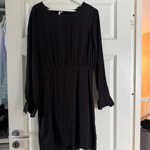 Sort kjole/tunika med «volanger» på skrå over fronten selges.