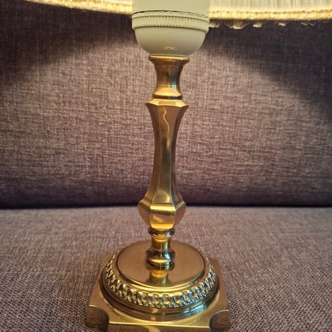 Nydelig gammel lampefot selges. Den er 24 cm høy. Foten er i messing. Glass nederst.