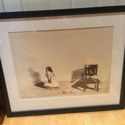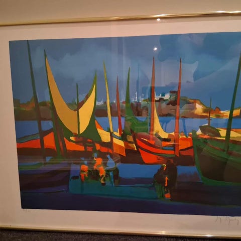Udo Noltes "Harp and Flute" med forgylt ramme og passepartout.