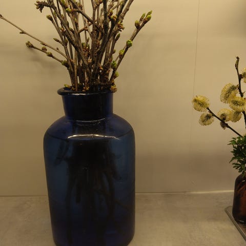 Gammel glasskrukke i kobolt. Håndmalt.