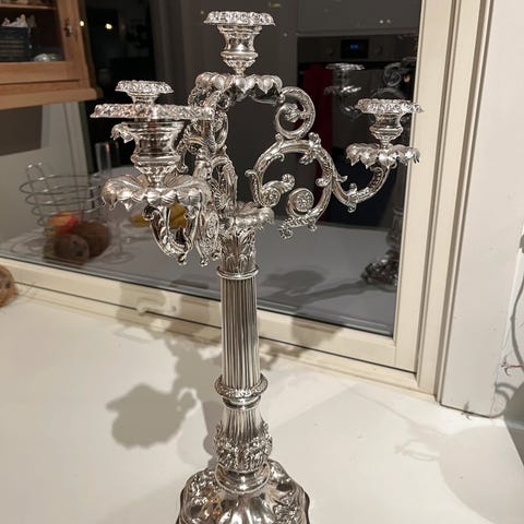 Sølv. Tyskland. Fem-armet. Svungne armer. Ca 150 år gammel