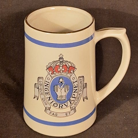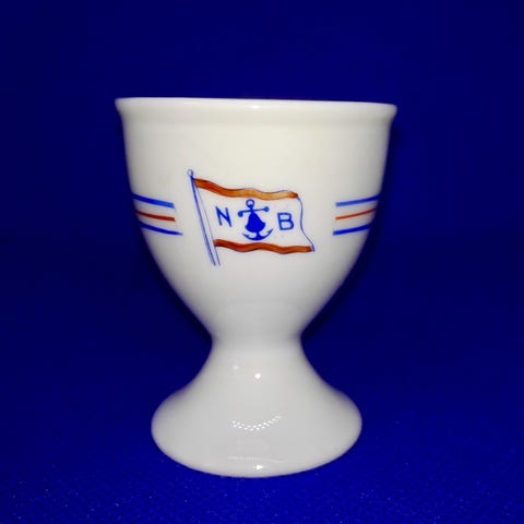 Liten fløtemugge produsert av Porsgrund Porselænsfabrikk for tidligere rederi Norsk Bjergningskompagni A/S.