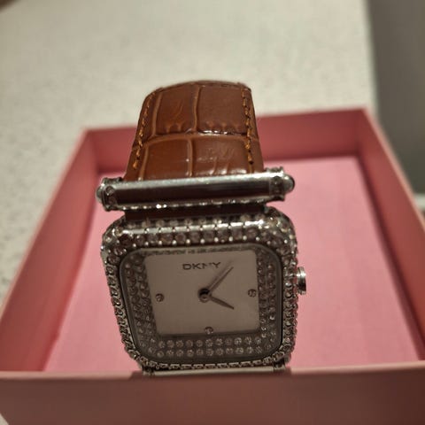 Guess klokke. Kun brukt en gang. Det er batterier i klokken.