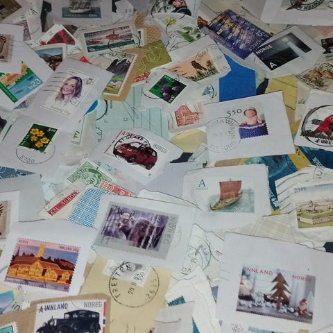 Frimerkeklipp -brevklipp - SISTE LOT frimerker Norge, 850 gram