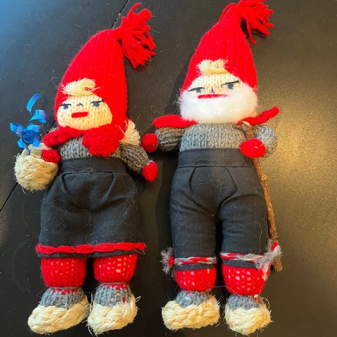 Fine strikkete Julenisse par. Jente og gutt.. Made in Sweden.