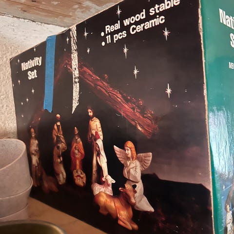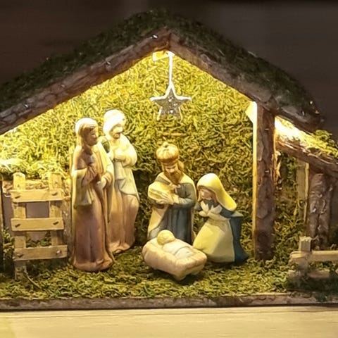 Julekrybbe lagt av oliventre