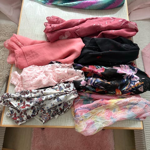 Selger parti med silkeskjerf 30 stk. super fine for bruk i hals eller som hode pynt.