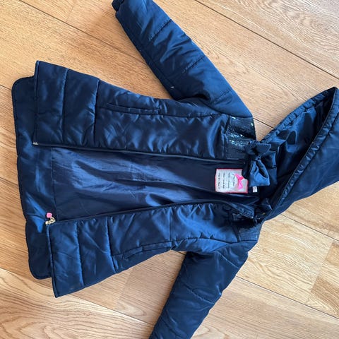 Nydelig svart kåpe med fin fasong. Str 4 år. Passer større og blir bare kortere.