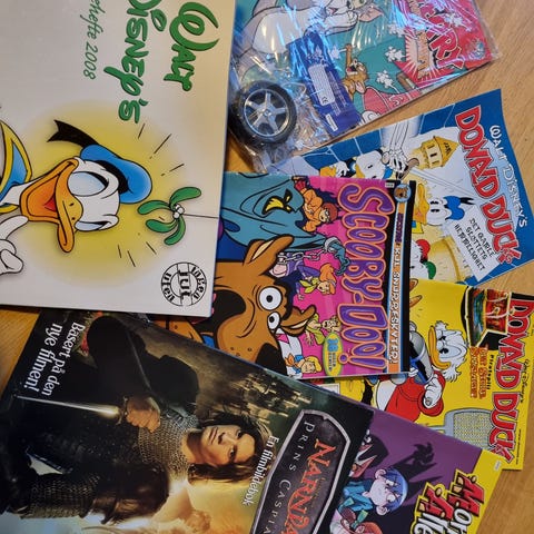Tegneseriehefte med titlene 'Nikkis Eventyr' og 'Mitt Lille Esel'. Inneholder fargerike illustrasjoner og historier. Passer for tegneserieentusiaster og samlere. Fulgt med i Donald en gang på 70/80-tallet. Sender. Kan sendes som brevpost.