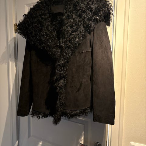 Semsket skinn kåpe med pels fra Michael Kors i str S. Farge: mørk brun.