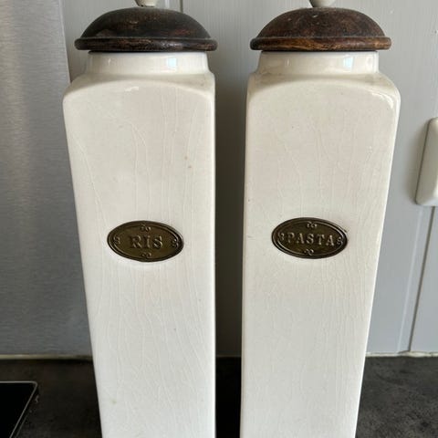 4 Kjøkkenbokser. Pasta, ris, sukker og mel . 300kr for alle fire boksene 😉 Ta kontakt på SMS 😉