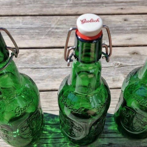 4 stk små, 2 mangler gummiringer på patentkorken. Kr 25/stk