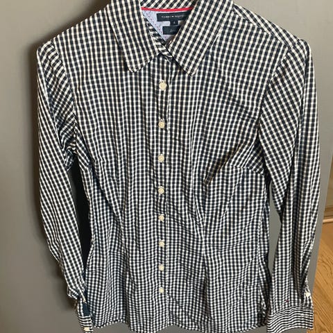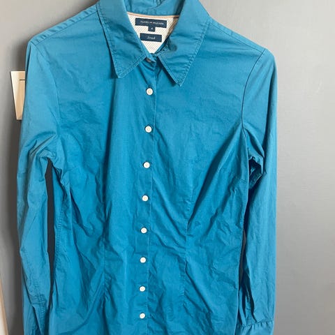 Blå Tommy Hilfiger skjorte i størrelse 4. Lange ermer. Mykt stoff, fin på sommeren. Stjernemønstret. Knapt brukt. Har også andre liknende skjorter (se andre annonser)