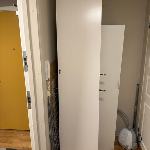 Ubrukt dørdempere til 2 dørs skyvedørs garderobeskap fra Tvilum. Ligger i orginalforpakningen. Festes på baksiden av dørene. Kjekt å ha til tunge dører for å unngå smelling med dørene. Passer muligens også andre typer dører. Se bilder. Dørdempere ble aldri montert og nå har vi flyttet til annet sted. Nypris var kr 800.