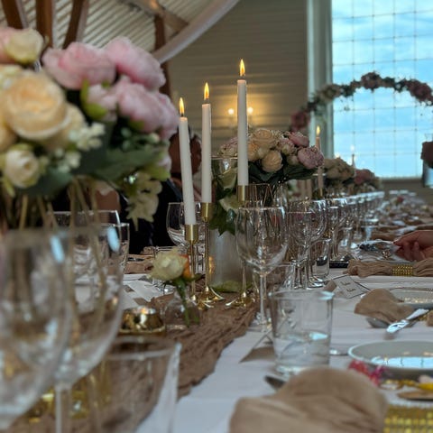 - Lekkert å matche samme farge på sløyfebånd og serviettringer!