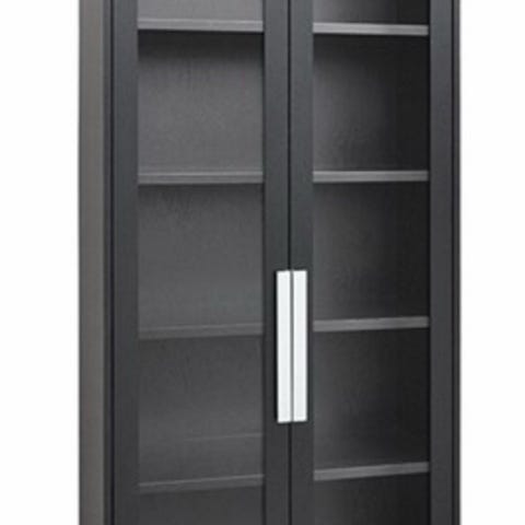 Nytt vitrineskap fra Home Factory i sort beiset eik og med sorte håndtak. Selges etter styling av hytte.