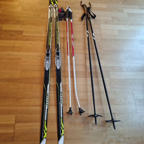 Fischer barneski gies bort. SMØREski, lengde 140cm. Den ene bindingen er litt ødelagt ved hælen (se bilde), men fungerer utmerket.