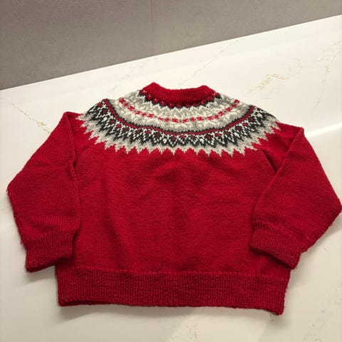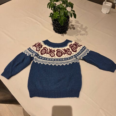 Selger en pent og lite brukt ullgenser, hjemmestrikket ca 4-6 år.