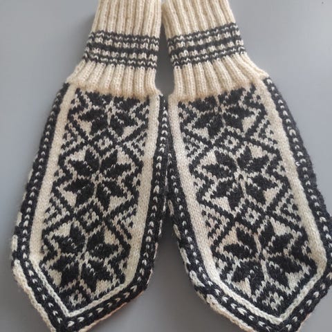Ny ubrukte Håndstrikkede vanter 5 fingre fra Arts & Crafts. 100% wool. Røyk- og dyrefritt. Ny med tagg. Selger kr.499,-. Pris er satt.
