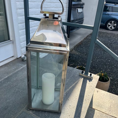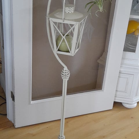 Nydelig lyslykt som kan brukes til flere ting: kubbelys, planter, dekorasjon. Mest til innendørsbruk, da den er av metall og kan ruste litt. Lite rust på den, da jeg brukte den til jul som lyslukt i inngangspartiet ute. Kan og brukes på bade til pynt og romantisk bad. Mål: H 67cm, B med bein 30cm, ellers 17cm. Hel og fin med vanlige bruksmerker, som er sjarmerende. Materialet: glass og metall. Best vis den hentes, men jeg kan sende. Pakker godt i så fall. Pakking og frakt 200,-