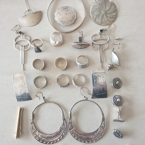 Seks par med øreklips selges samlet for 150 kr. Ingen stempler å se.