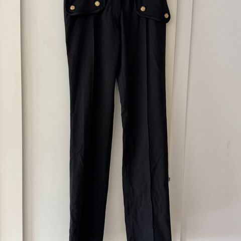 Selger denne lekre D&G buksen som er brukt en gang og dermed fremstår som ny. Italiensk str 46 som tilsvare ca 40 i norsk størrelse. Måler ca 43 cm over linningen, 97 cm målt på utsiden og 72 cm på innsiden av beinet. Den kan legges ned med 4 cm om ønskelig 👍🏼 Den er laget av 62% silke 😊