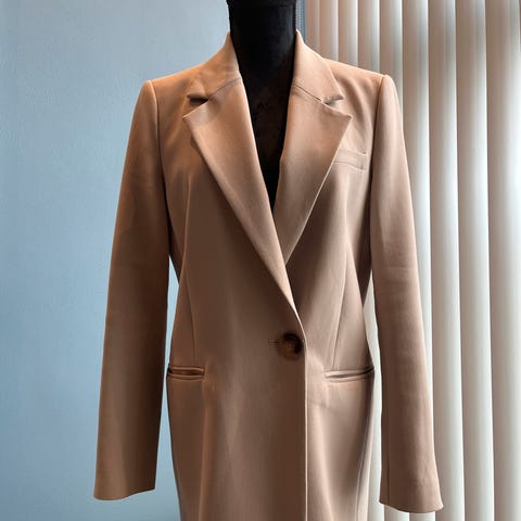 Meget fin ullkåpe, fra OUI, selges pga feil størrelse. Ikke brukt. Blek rosa farge.