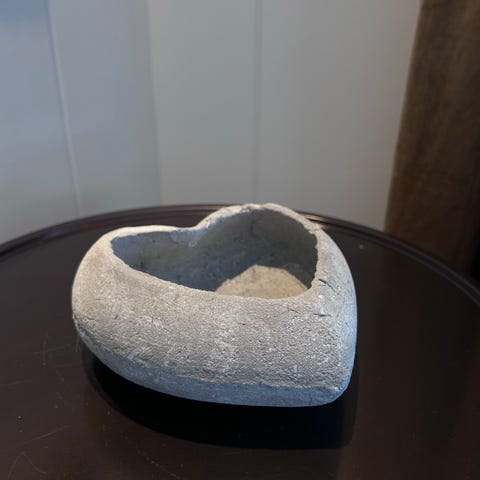 Pent og dekorativt grått ‘betong’-hjerte fra Home&Cottage 15 cm høyt og 15 cm bredt, 2,5 cm tykt. Selges kr 59,-